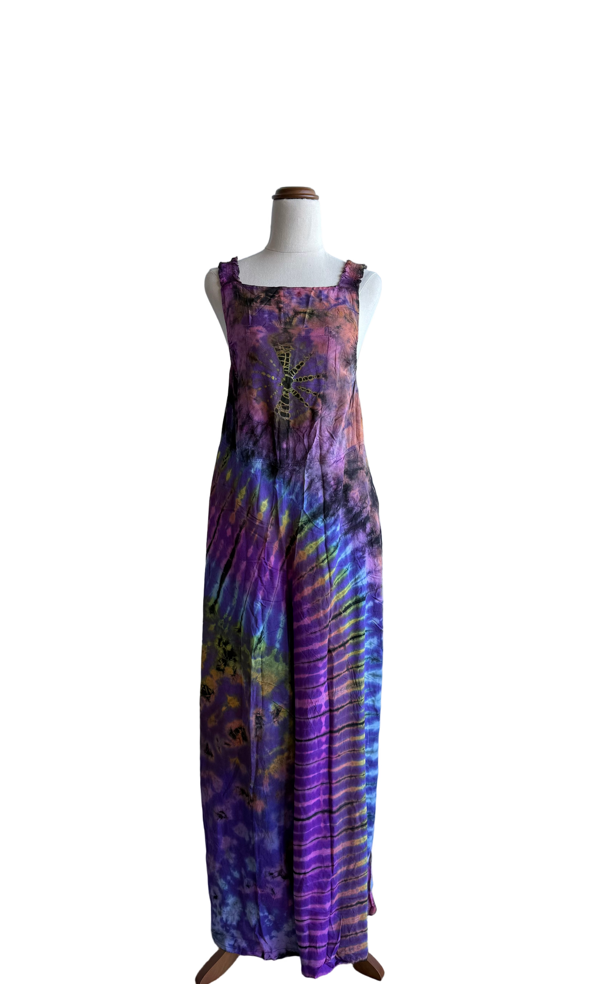 Brighten up your wardrobe with these lightweight, colourful tie-dye overalls made from soft, breathable rayon. Made in Nepal, they feature adjustable elastic straps with buttons, two side pockets, and a chest pocket, these overalls also have elastic at the back for a comfortable fit across various body types. Great for a relaxed, boho vibe.